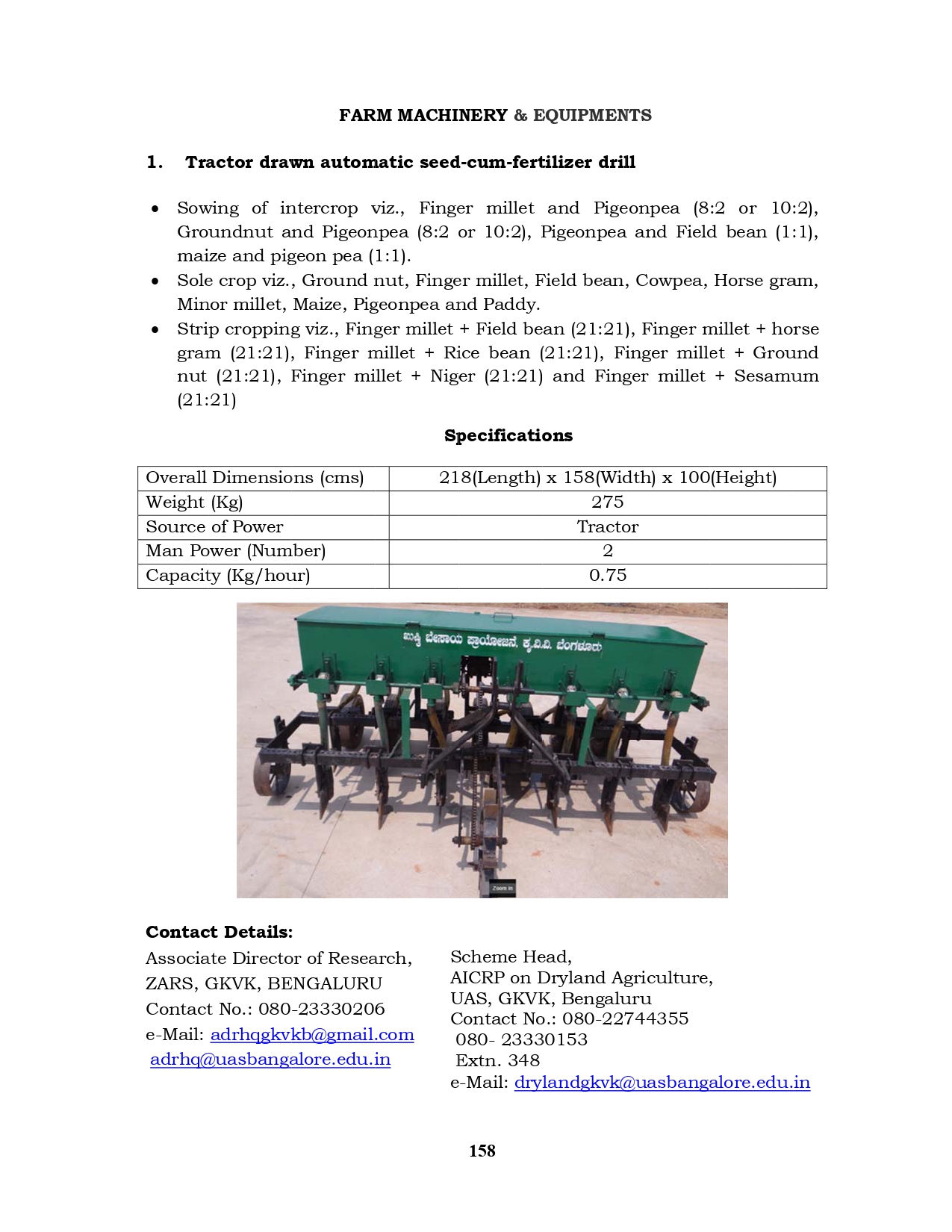 1. Tractor drawn automatic seed-cum-fertilizer drill