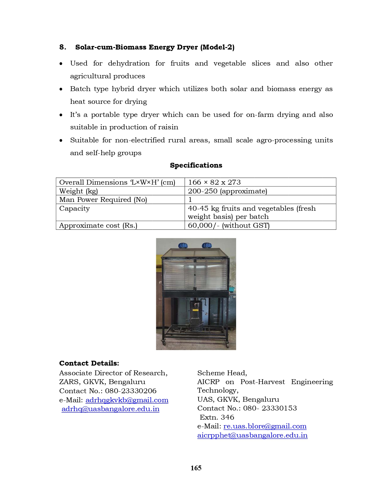 8. Solar-cum-Biomass Energy Dryer (Model 2)