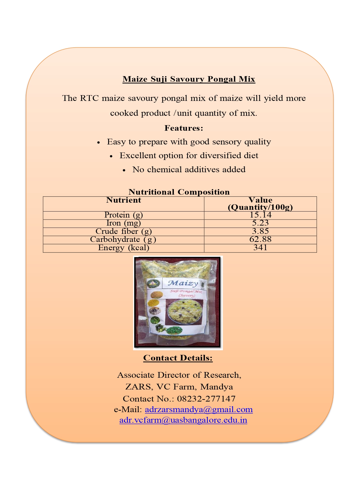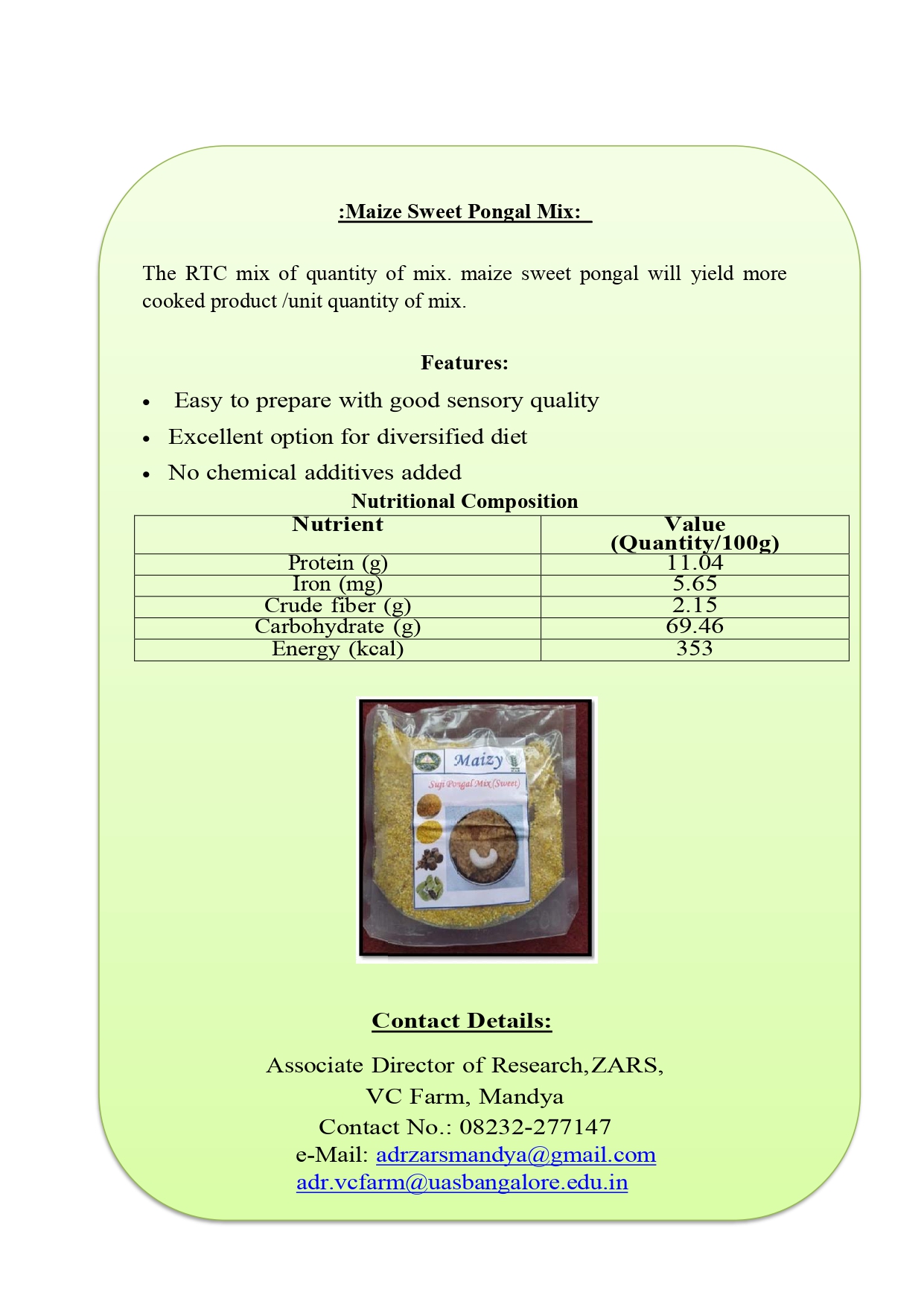 3. Maize Sweet Pongal Mix