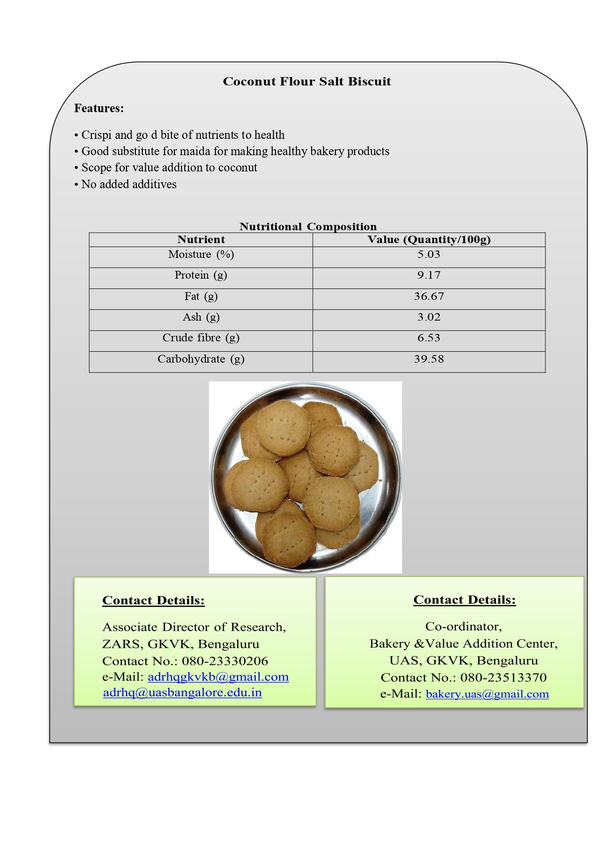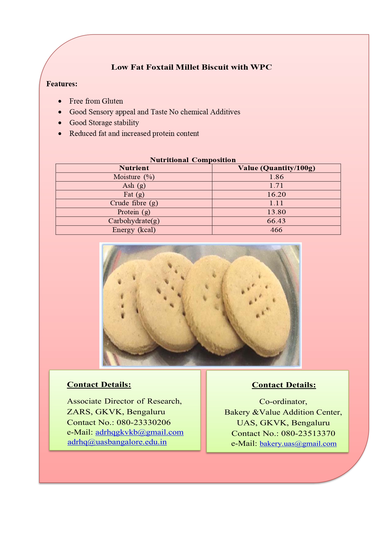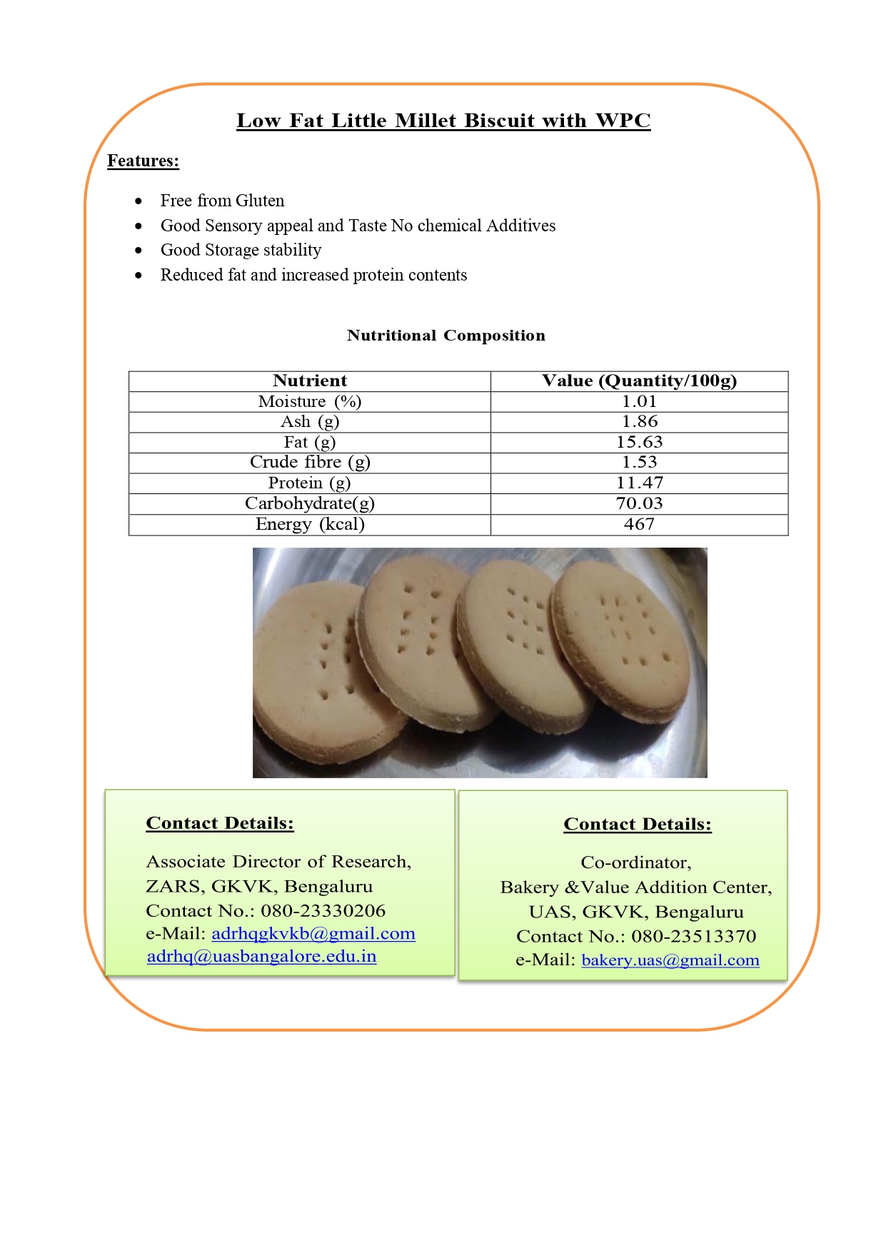 11. Low Fat Foxtail Millet Biscuit with WPC