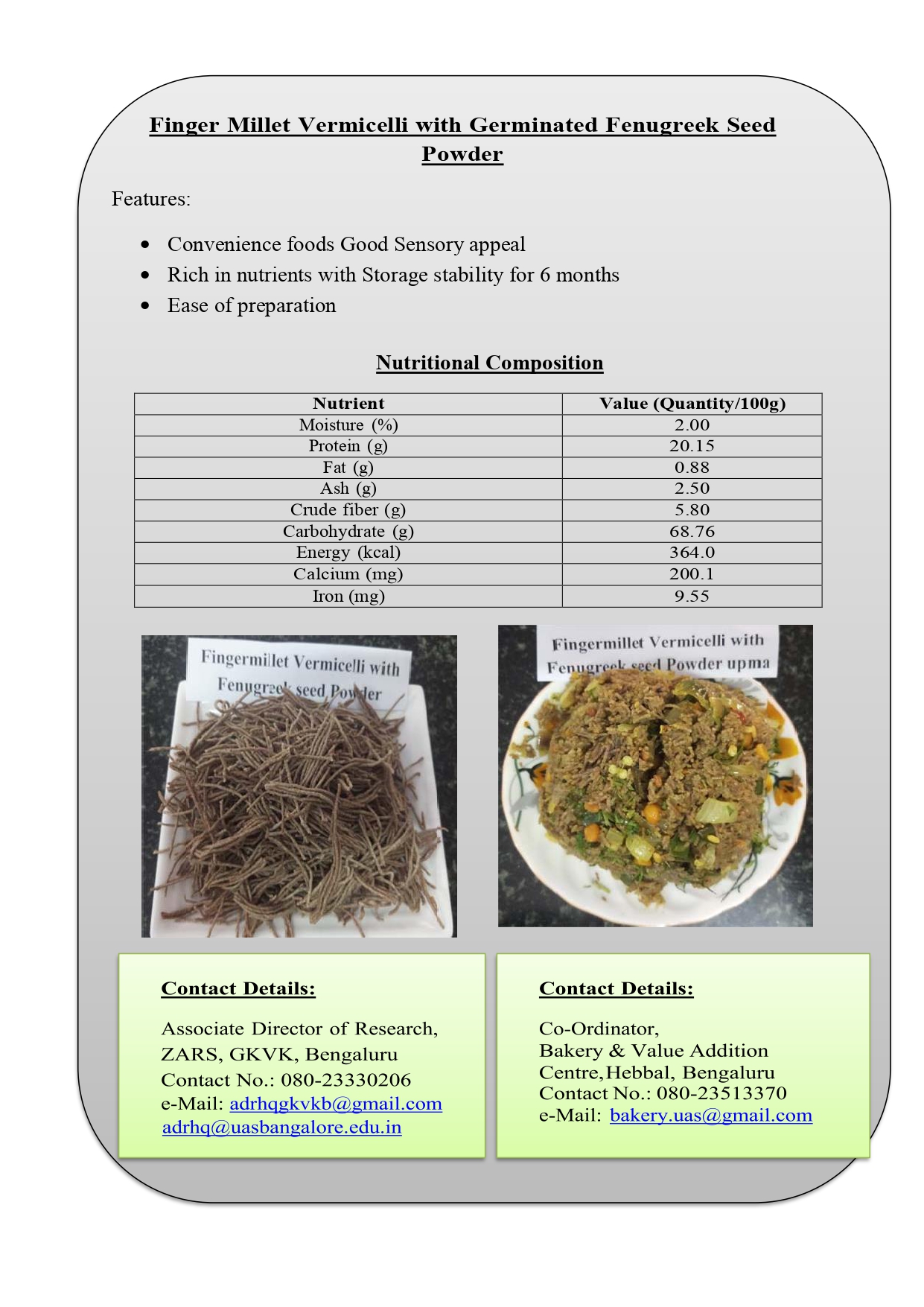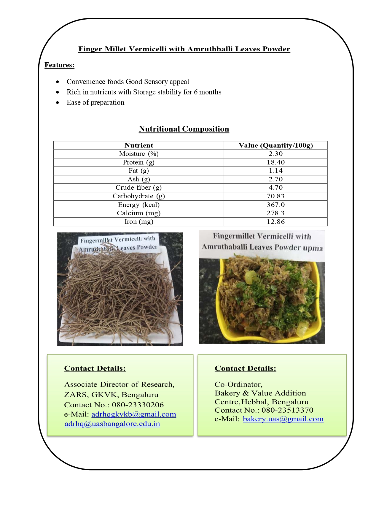 11. Finger Millet Vermicelli with Amruthballi Leaves Powder