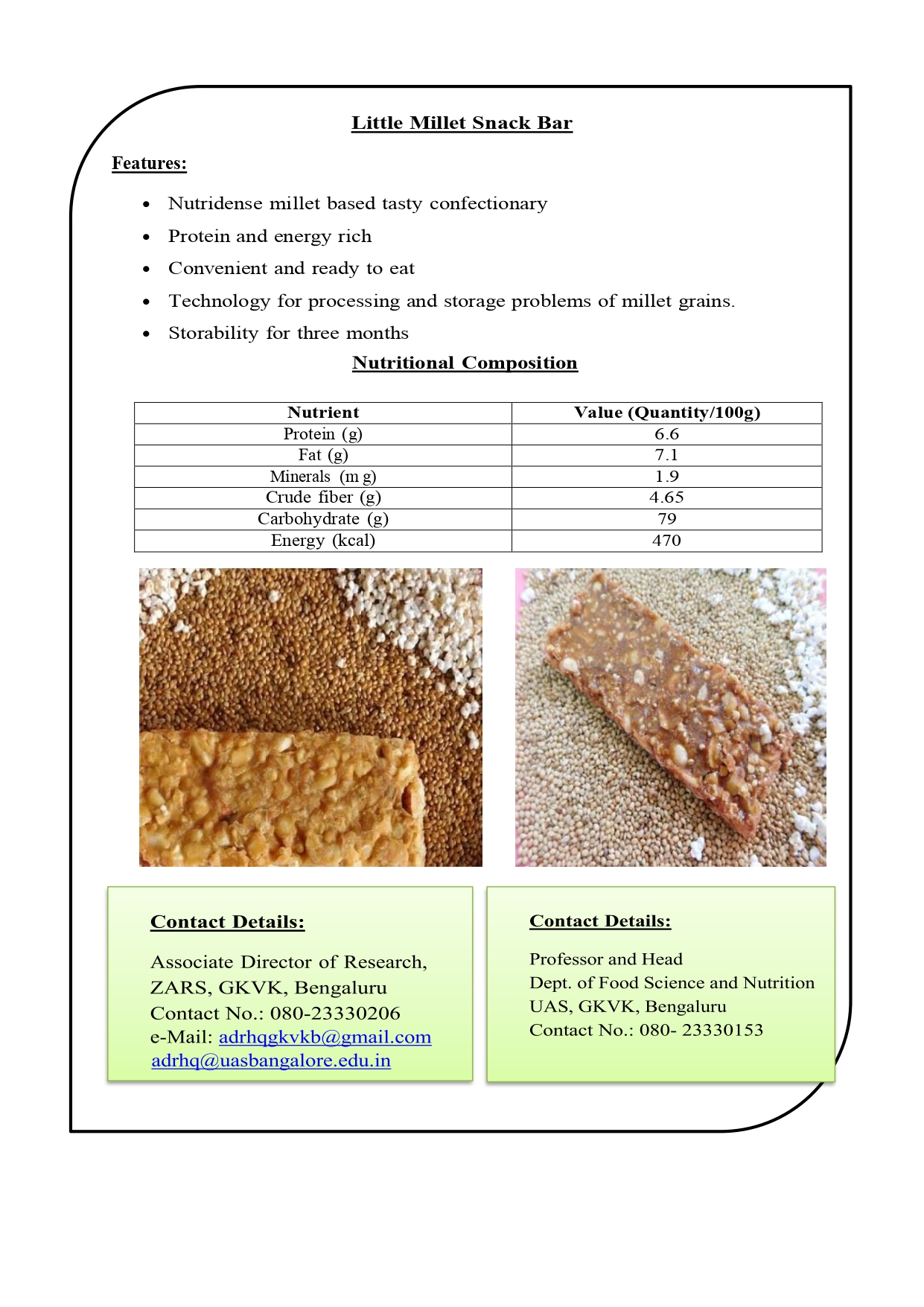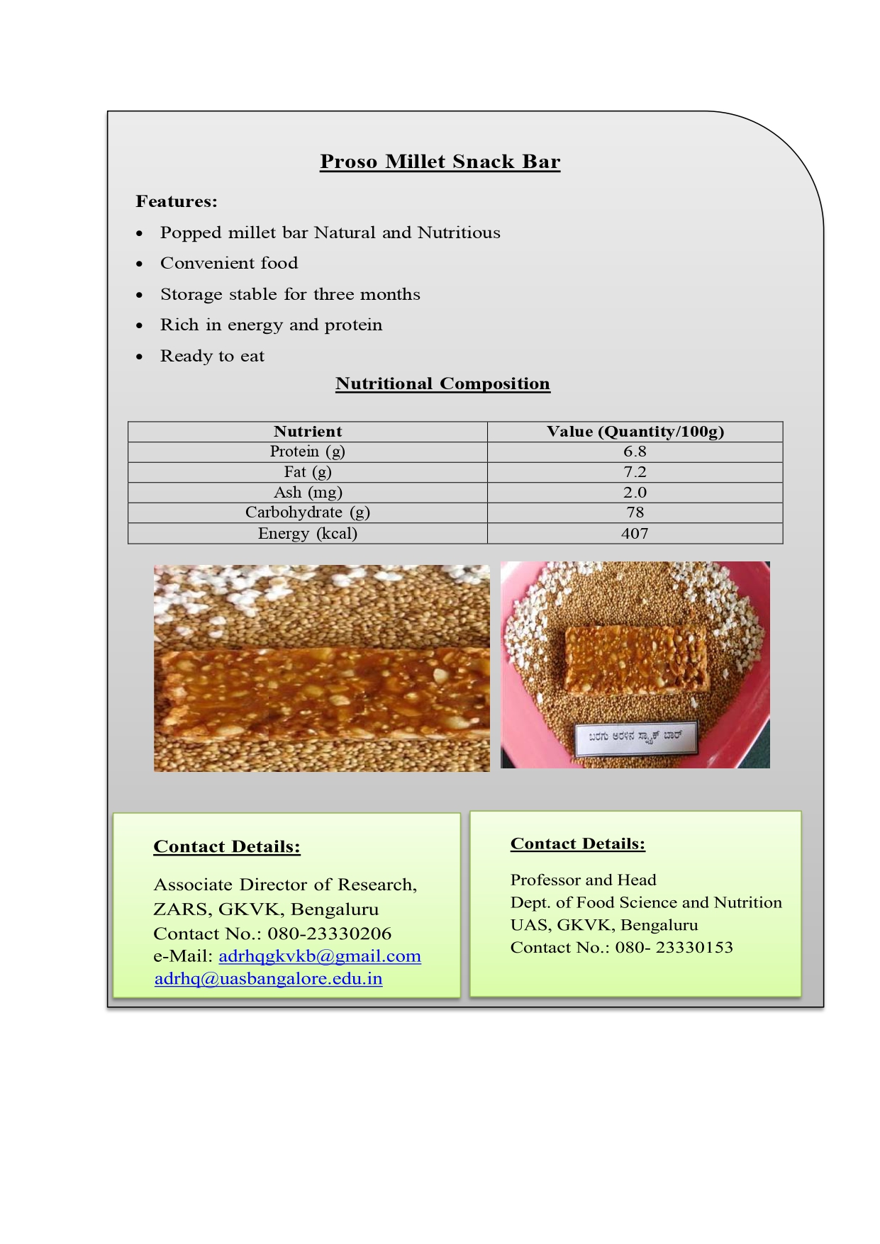 1. Proso Millet Snack Bar