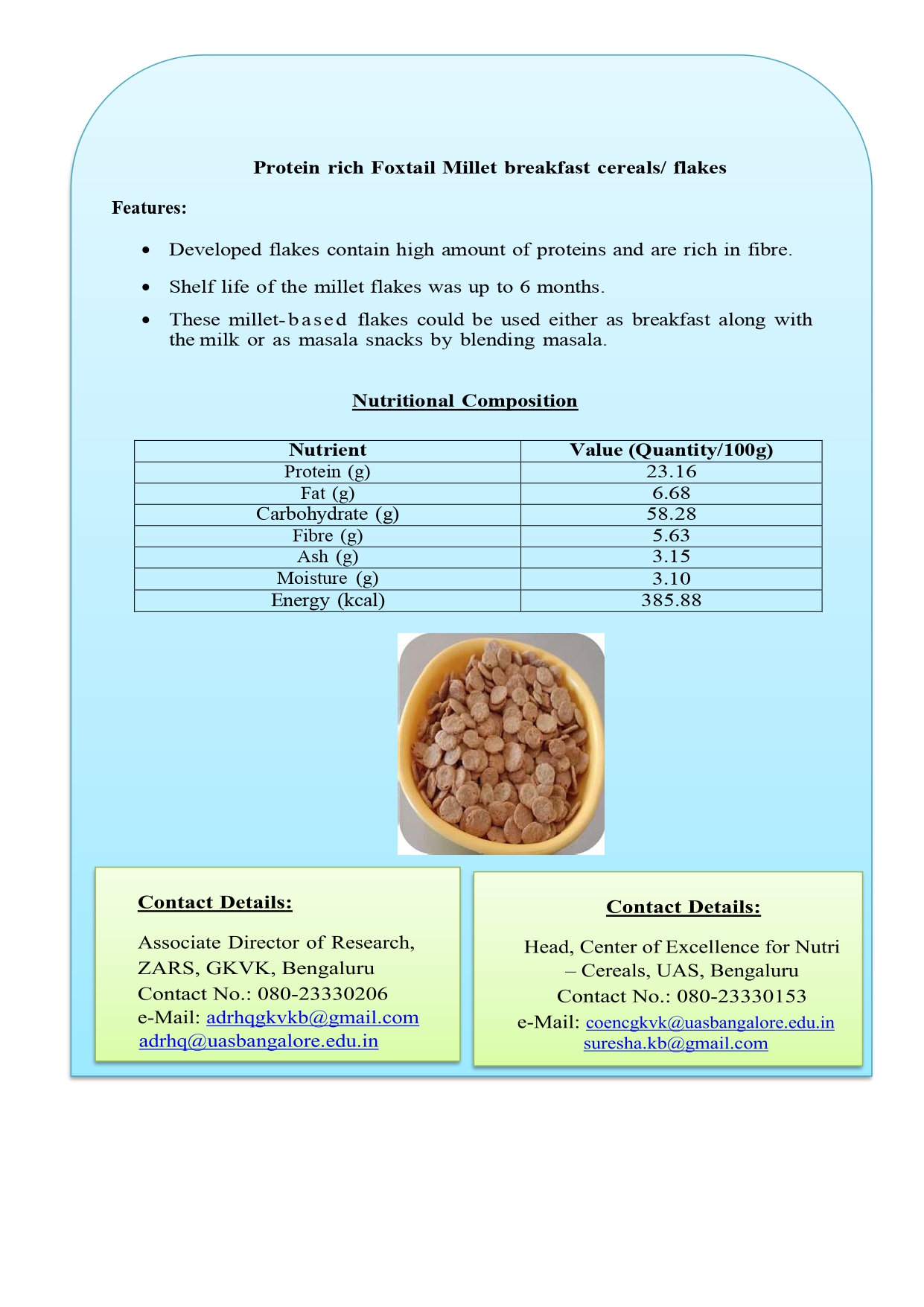 3. Protein rich Foxtail Millet breakfast cereals/ flakes