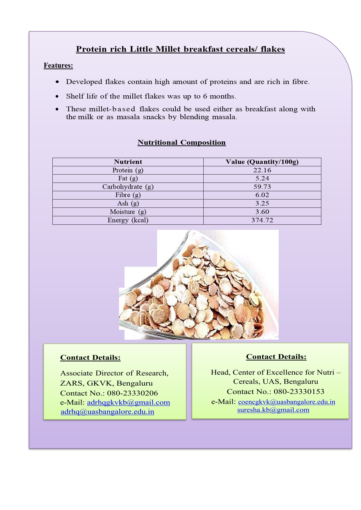 4. Protein rich Little Millet breakfast cereals/ flakes
