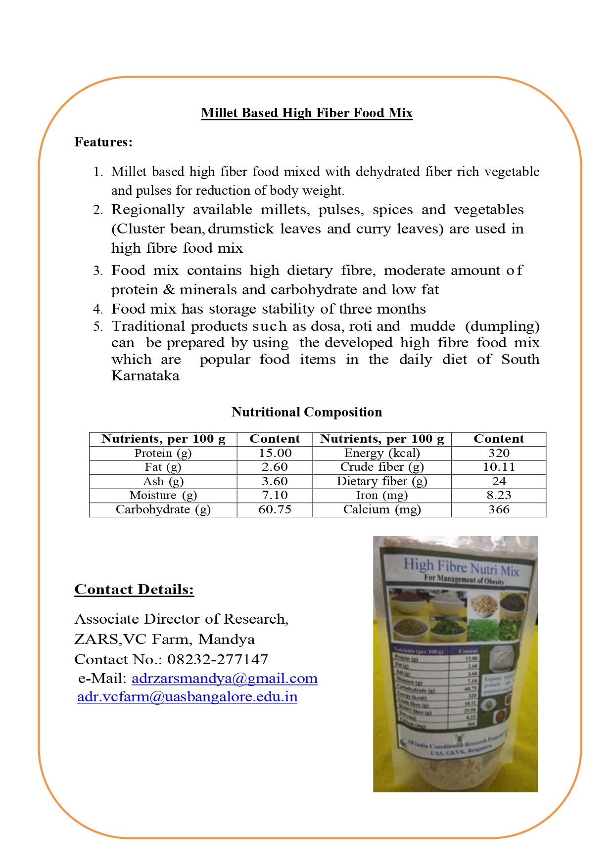 4. Millet Based High Fiber Food Mix