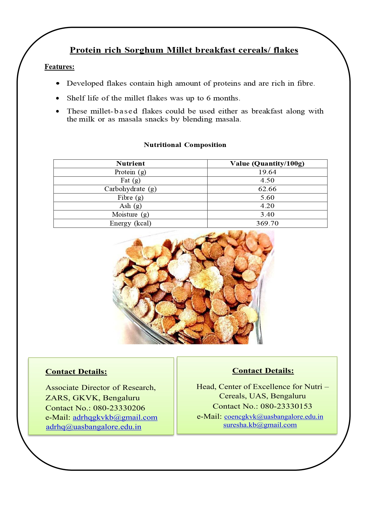 5. Protein rich Sorghum Millet breakfast cereals/ flakes