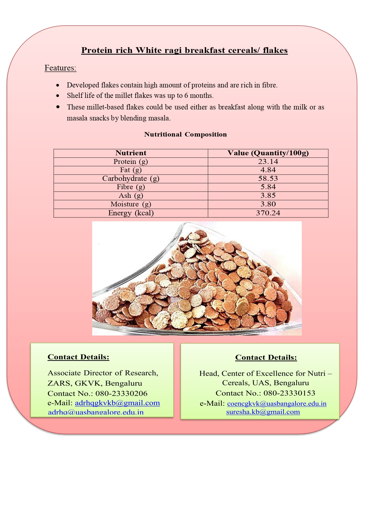 6. Protein rich White ragi breakfast cereals/ flakes
