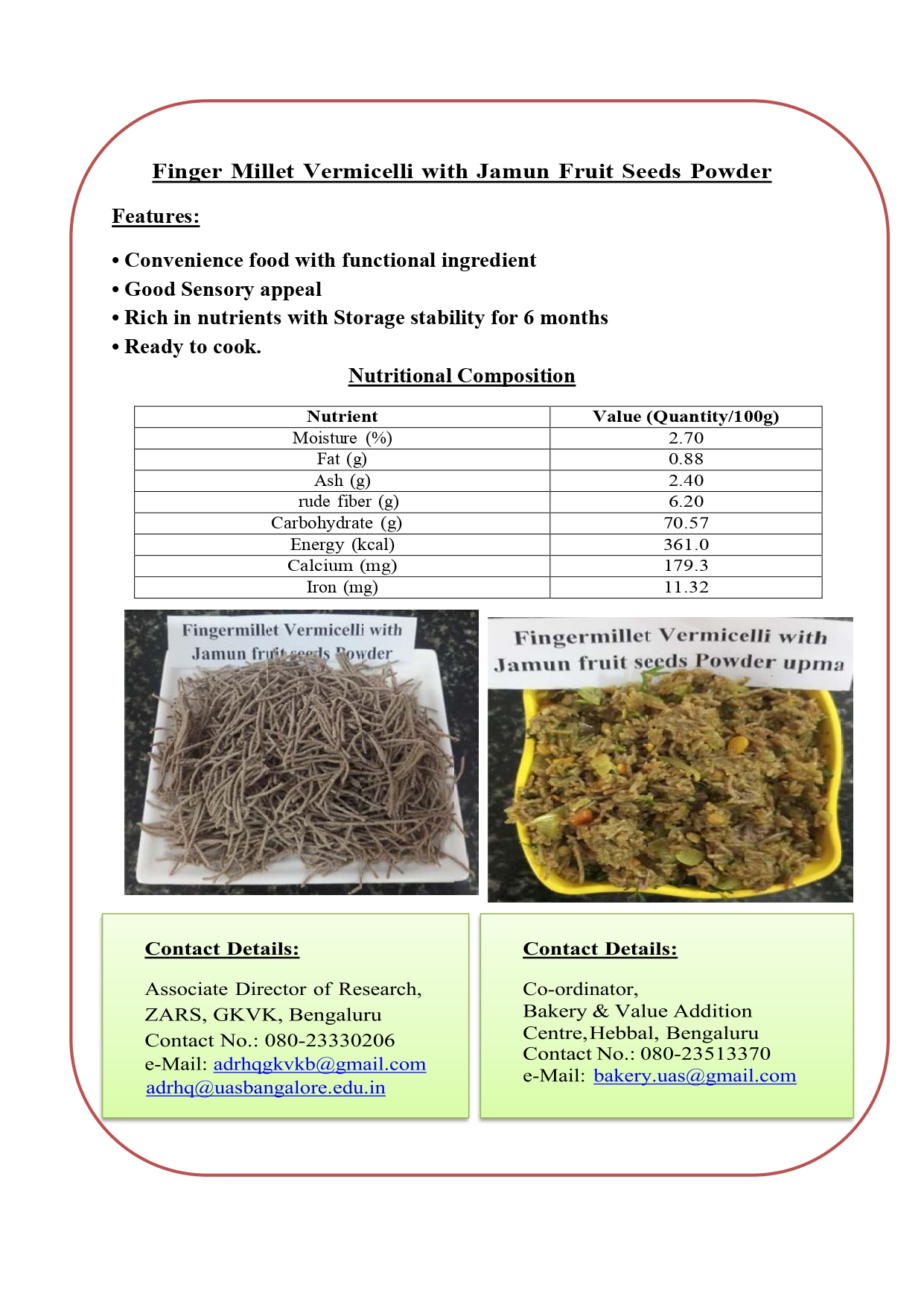 9. Finger Millet Vermicelli with Jamun Fruit Seeds Powder