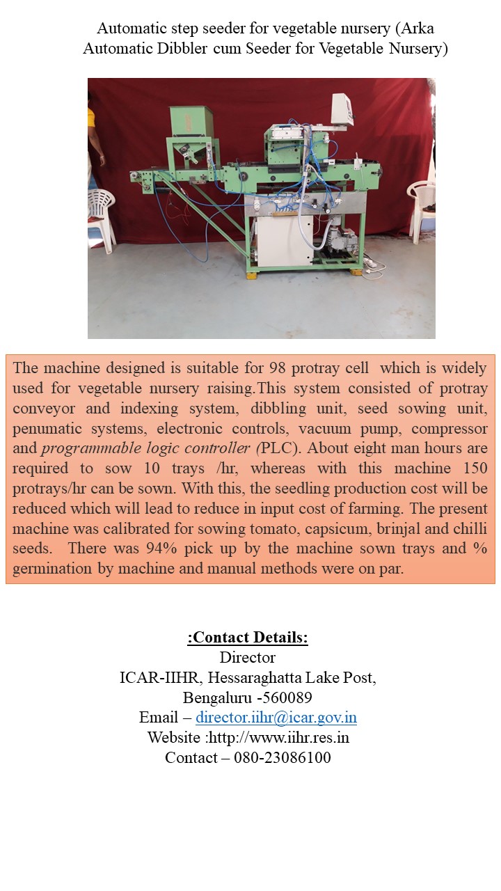 Automatic step seeder for vegetable nursery (Arka Automatic Dibbler cum Seeder for Vegetable Nursery)