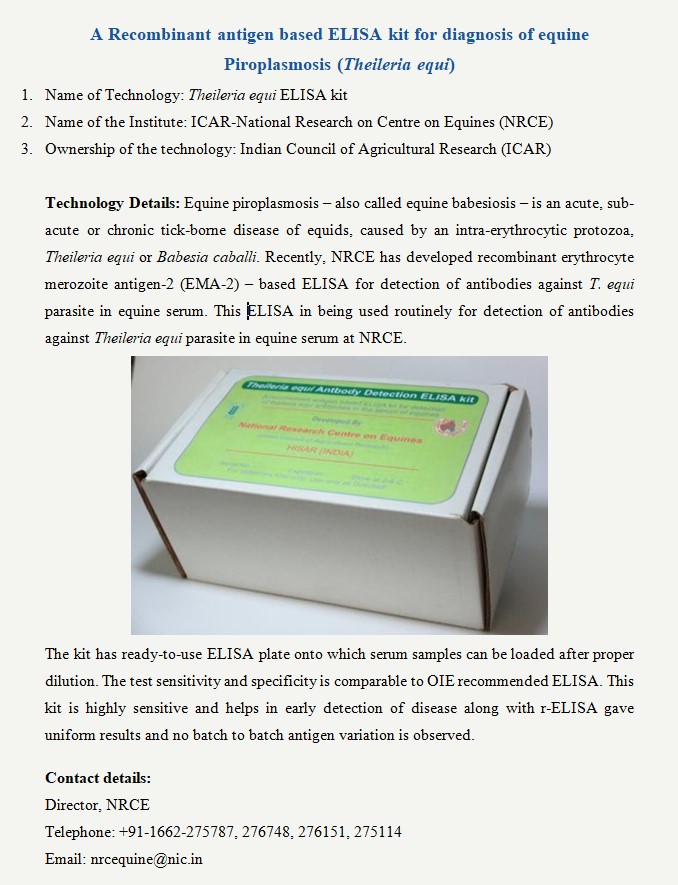 A Recombinant antigen based ELISA kit for diagnosis of equine Piroplasmosis (