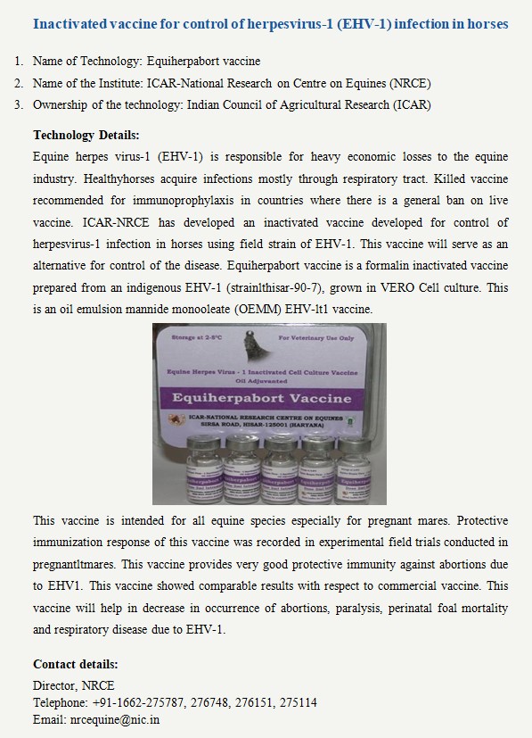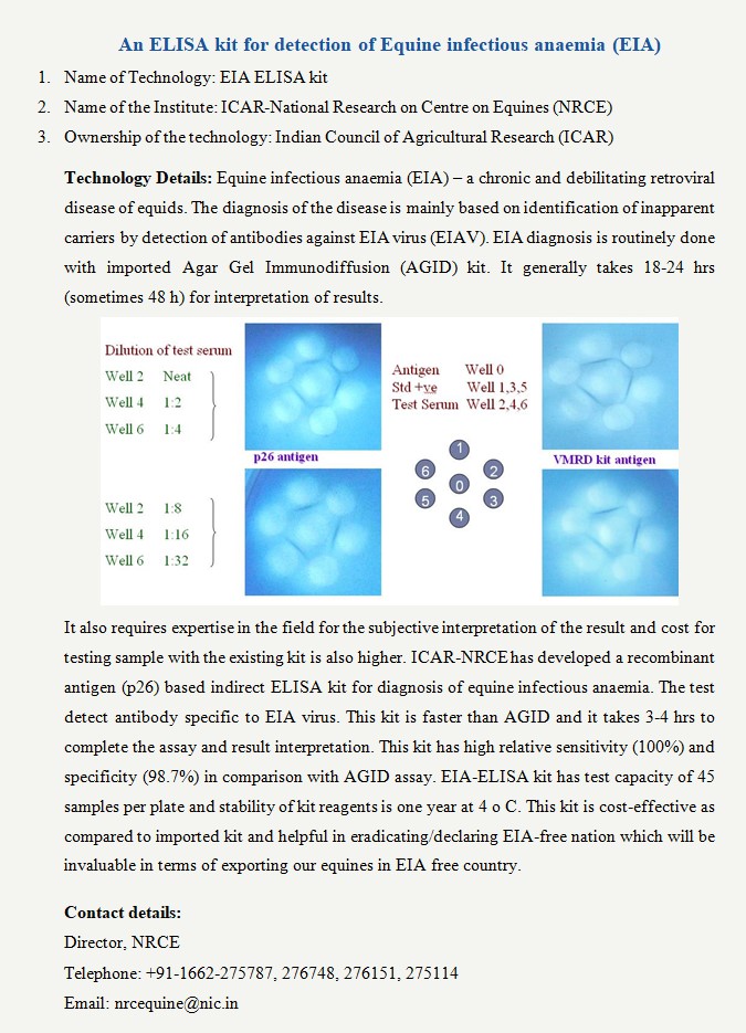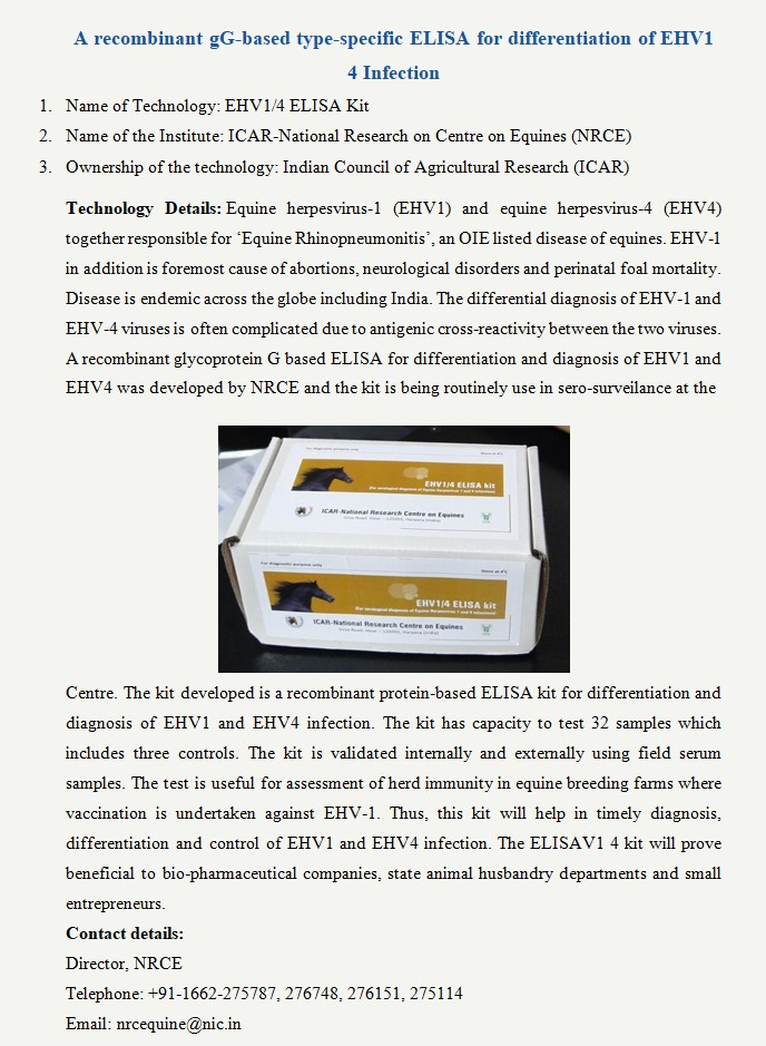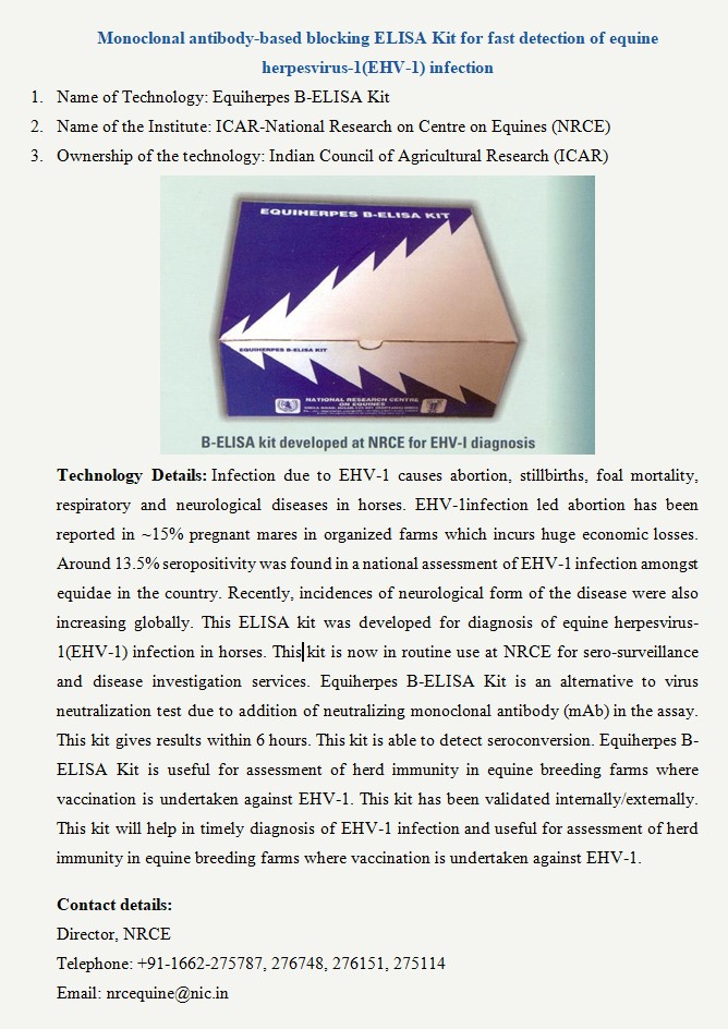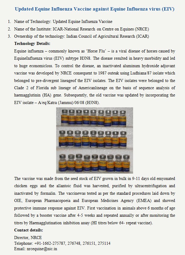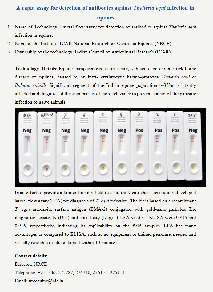 Technologies –ICAR – National Research on Centre on Equines (NRCE )